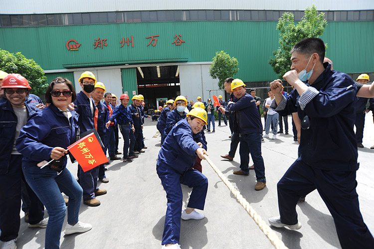 活動的第一環(huán)節(jié)是拔河比賽。車間里他們是協(xié)同合作的工友,賽場上他們是同心同力的隊(duì)友。哨聲落,紅綢起,粗壯的繩索在力的作用下瞬間繃緊,隊(duì)伍兩邊人頭攢動,吶喊助威聲此起彼伏。男生組比完,女生組上,巾幗也不讓須眉,女生們更是放下平日里的矜持,出力的瞬間,臉上的每一個細(xì)胞仿佛都在使力。
