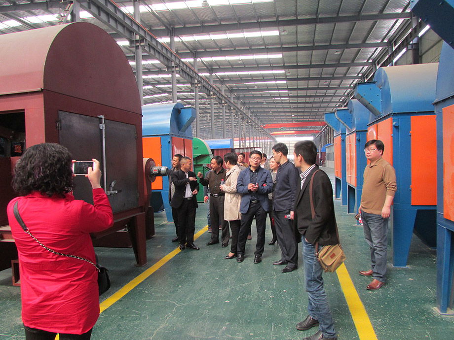 隨后,在參會(huì)代表跟隨公司張彥亭副總來到了生產(chǎn)車間,近距離接觸和了解糧食烘干機(jī)生產(chǎn)加工過程。車間里,工人正在緊張有序的忙碌,一排排的設(shè)備零部件和半成品整潔有序的排列在成品區(qū)。張總帶領(lǐng)大家首先參觀了烘干機(jī)零部件加工和部裝件組裝的工作現(xiàn)場(chǎng),大家對(duì)萬谷公司強(qiáng)大的機(jī)械加工和裝配能力贊不絕口;隨后大家來到成品存放區(qū),這里排列著組裝完成的清理篩、提升機(jī)、熱風(fēng)爐、小型糧食烘干機(jī)等成品設(shè)備,公司技術(shù)人員箱大家詳細(xì)講解了烘干設(shè)備的結(jié)構(gòu)組成和工作原理。參會(huì)代表紛紛表示:有了這次親身參觀工程經(jīng)歷,對(duì)糧食烘干機(jī)有了更深入、直觀的認(rèn)識(shí),同時(shí)也深深感受到鄭州萬谷機(jī)械在糧食烘干機(jī)領(lǐng)域所做出的突出貢獻(xiàn)和取得的輝煌成就。一位市級(jí)農(nóng)機(jī)推廣站站長(zhǎng)表示:作為農(nóng)機(jī)推廣管理部門,我們就是應(yīng)該向農(nóng)戶和農(nóng)機(jī)從業(yè)者推廣鄭州萬谷機(jī)械這樣的優(yōu)秀生產(chǎn)企業(yè)和他們的優(yōu)質(zhì)產(chǎn)品,這樣才真正發(fā)揮出農(nóng)機(jī)推廣的目的和意義,對(duì)我國(guó)農(nóng)機(jī)產(chǎn)業(yè)的發(fā)展意義重大,同時(shí)推廣優(yōu)質(zhì)的產(chǎn)品也是對(duì)廣大農(nóng)機(jī)使用者的負(fù)責(zé)。