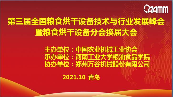 2021年10月27日,中國農(nóng)業(yè)機械工業(yè)協(xié)會糧食烘干機分會換屆大會及第三屆全國糧食烘干設(shè)備技術(shù)與行業(yè)發(fā)展峰會在青島“國際農(nóng)機展”期間成功召開。本屆峰會由中國農(nóng)業(yè)機械工業(yè)協(xié)會主辦,河南工業(yè)大學(xué)糧油食品學(xué)院承辦,鄭州萬谷機械股份有限公司協(xié)辦。
