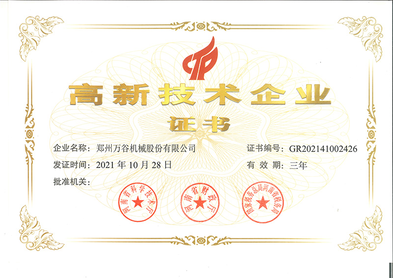 近日,河南省科技廳、河南省財(cái)政廳和河南省稅務(wù)局聯(lián)合發(fā)文《關(guān)于認(rèn)定河南省2021年度第一批高新技術(shù)企業(yè)的通知》,鄭州萬谷機(jī)械股份有限公司再次被認(rèn)定為“高新技術(shù)企業(yè)”。