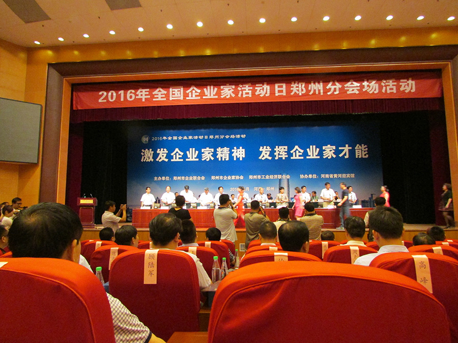 2016年6月16日,2016年全國企業(yè)家活動日鄭州分會場活動在風景如畫河南黃河迎賓館隆重舉行。會議由鄭州企業(yè)聯合會、鄭州企業(yè)家協會和鄭州工業(yè)經濟聯合會主辦。鄭州市十二屆人大市常委會主任、市“三會”會長郝建生,市工信委黨委副書記趙榮光,市“三會”常務副會長、理事長張文田,以及“三會”副會長、各縣區(qū)協會會長和獲獎企業(yè)代表等450余人一起出席活動。