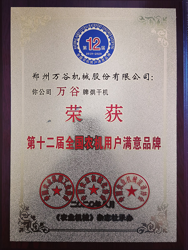 金杯銀杯不如全國用戶的口碑,鄭州萬谷糧食烘干機(jī)再獲獎(jiǎng)