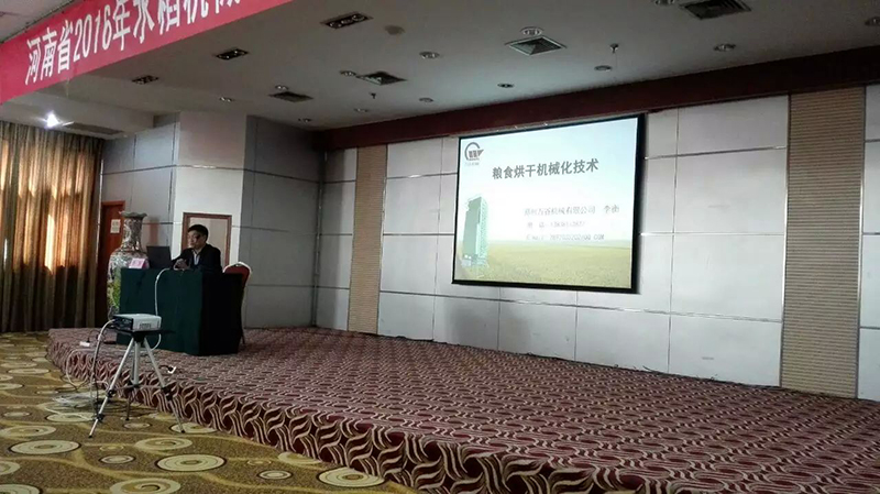 李總在講座中向與會人員詳細闡述了我國糧食干燥行業(yè)的發(fā)展趨勢與現(xiàn)狀、糧食烘干機的分類以及如何選擇合適的稻谷烘干機等內(nèi)容。李總的專題講座對參會代表比較關(guān)心的如何選擇合適的水稻烘干機著重介紹,由于水稻特殊的理化特性,也就要求了水稻烘干機特殊的結(jié)構(gòu)和烘干工藝,而且我省水稻產(chǎn)區(qū)通常還間種小麥、玉米等糧食作物,這也要求在我省推廣的水稻烘干機還應(yīng)兼顧其他糧食作物的烘干處理,這有別于我國南方省份單一烘干水稻的特點。鄭州萬谷機械有限公司于2015年獲得省級科技成果鑒定產(chǎn)品—小型連續(xù)、循環(huán)兩用糧食烘干機和2014年獲得“河南省工業(yè)節(jié)能產(chǎn)品認定”的大型混流式糧食烘干機很好的解決了以上問題,能耗低、烘后品質(zhì)好是鄭州萬谷機械有限公司水稻烘干機的亮點。