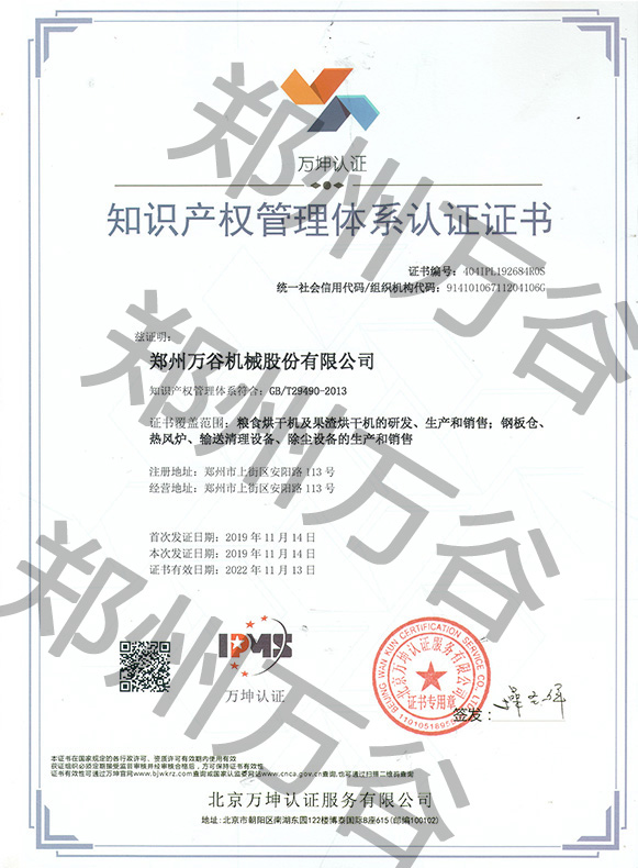 鄭州萬谷機(jī)械喜獲知識(shí)產(chǎn)權(quán)管理體系認(rèn)證,助力糧食烘干機(jī)產(chǎn)業(yè)發(fā)展